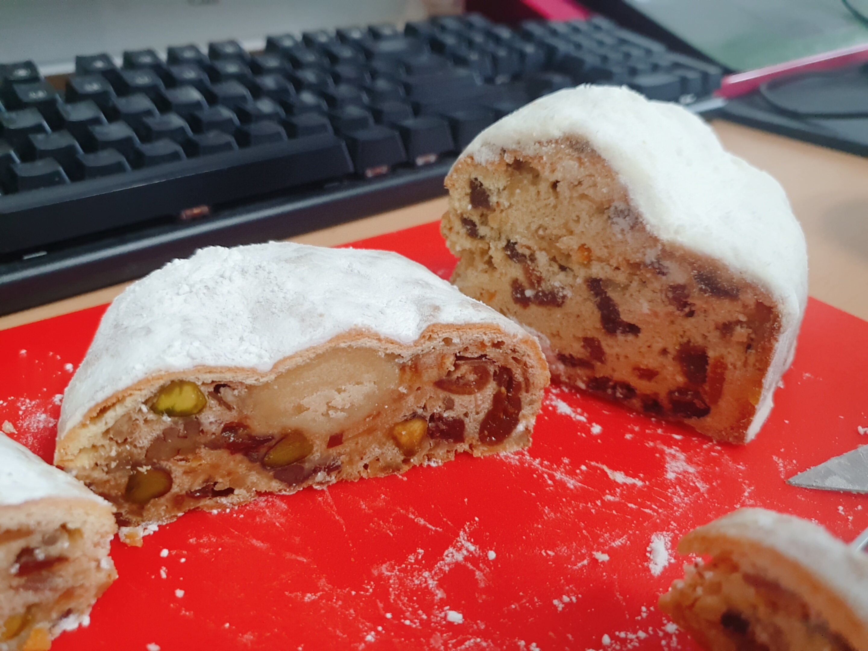 슈톨렌은 작년 겨울에 처음 먹어본 빵이었다. 처음 먹었을 때는 안에 든 건과일과 견과류가 많이 씹히고 부드러운 것과는 먼 식감을 느꼈었다. 그럼에도 맛있어서 열심히 먹었던 기억이 있다.