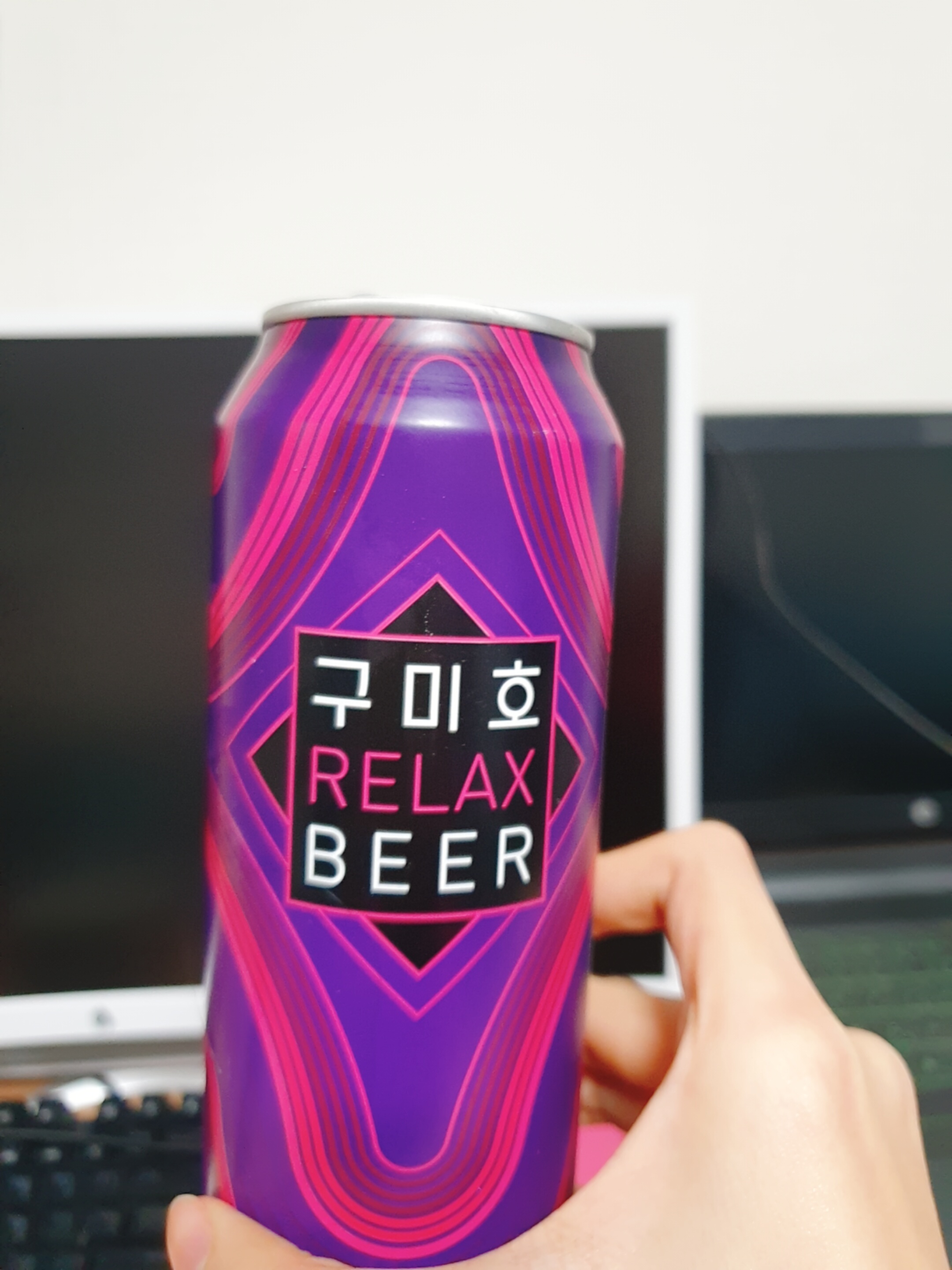보라보라한 저 캔이 날 홀렸다. 이름도 구미호 릴렉스 비어. 홀릴만한 예쁜 캔이라고 생각했는데 남자친구는 그렇게까진 생각하지 않은 듯 했다.